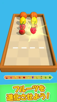 - 同じ果物が当たると合体して、ひとつ上の果物に進化