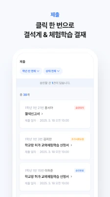 학부모가 모바일로 제출한 신청서를 결재 및 취합, 관리하실 수 있습니다.