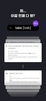 단어 검색 창에 모르는 단어를 입력해 보세요. 스펠링을 전부 넣기도 전에 어느새 원하는 단어가 검색되어 있을 거예요.