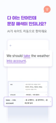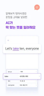 사전에서 단어를 찾았는데, 뜻이 너무 여러 가지라서 어느 게 맞는 뜻인지 모르겠다면, 그 문장을 통째로 말해보카 영어사전에 넣어보세요. 말해보카 AI가 문장을 분석해서 각각의 단어가 문맥 속에서 어떤 뜻으로 쓰였는지 정확히 판단해서 알려준답니다.