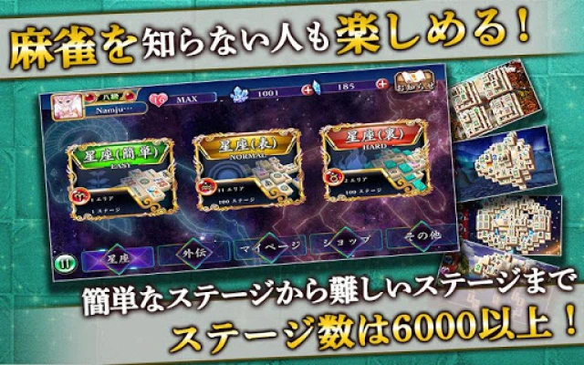 ・ステージの難易度が選べ、麻雀牌パズルの初心者~上級者まで幅広く楽しめます