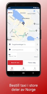 Skal du ha taxi der du er nå med en gang er det trykker du bare bestill-knappen. Resten går automatisk. Ha en fin reise!