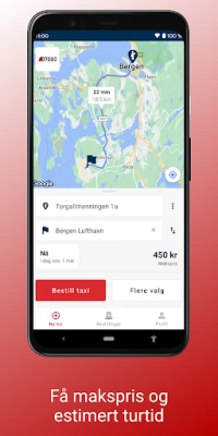 - Appen finner automatisk hvilke taxiselskaper som kan hente deg.