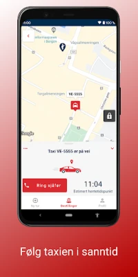 - Du får fortløpende informasjon om hvor taxien befinner seg og kan følge den i kartet helt til turen er over.