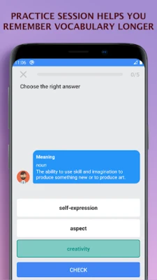 IELTS Preparation App: Not only does it have tools to speed up your learning, but with the daily quotes, it keeps you motivated, and the progress tracking means you know you're always on track to expand your vocabulary and master IELTS English. Memory-Boosting Practice Sessions: Practice makes perfect! Boost the chances of retaining vocabulary with activities planned to enable you to memorize it for the long term. Personalized Progress Tracking: It is in this that the learner can trace their learning journey and observe improvement with each new word.