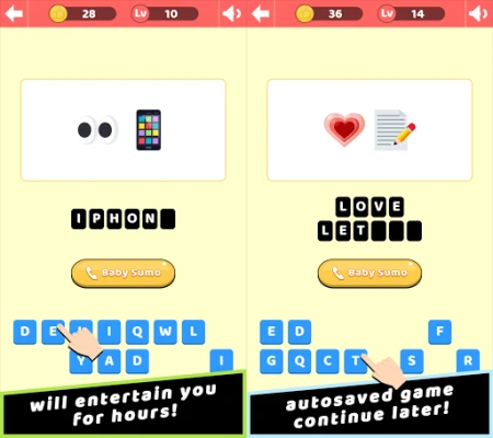 This quiz emoji game comes with the essential autosave feature that automatically saves your game on exit, so you can always continue your progress later. Whenever you’re on the toilet, or in the office toilet, or in the subway, or in the bed, or in other places, you can join the guessing fun at any time!