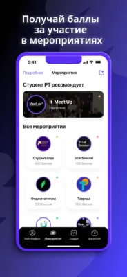 Активность в приложении поощряется — за участие в мероприятиях и выполнение заданий ты