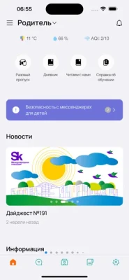 - Technopark services: ordering car passes, the opportunity to report a problem, ordering passes for guests, booking meeting rooms, calendar of events, communication with managers;