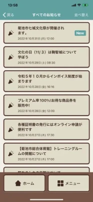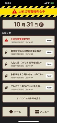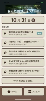 「きくち防災・行政navi」の主な機能は以下の通りです。