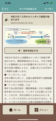 また、お知らせは「日常のお知らせ」と「緊急のお知らせ」と「重大な通知」の3段階の緊急度があり、「緊急のお知らせ」はタイトルが赤文字、「重大な通知」はタイトルが紫文字で表示されます。