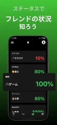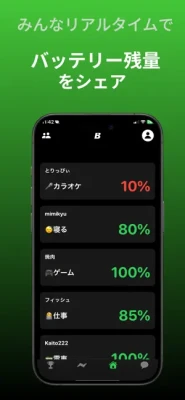 リアルタイムで友達とバッテリー残量を共有することで友達が、寝ているのか?、ご飯食べているのか?