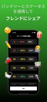 その人の日常生活に合わせて自分の情報をバッテリー残量からシェアすることができます。