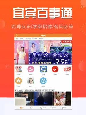我们用了10年时间打造了全宜宾影响力最大的互联网平台,现在宜宾已经有超过100万人在大宜宾APP上查看宜宾本地新闻资讯、爆料最新八卦、分享宜宾本地美食、查找宜宾招聘信息,参与宜宾同城交友活动,下载大宜宾APP让你打开一个全新的宜宾城市生活。