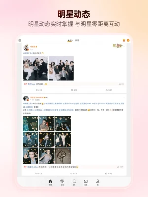 Feed: View photos, GIF pictures, videos, audios and texts posted from all the people you follow or from a certain group managed by you.