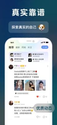 3. 动态广场:动态广场是平台上的公共交流区域,所有用户可以分享自己的日常、心情、探索心得等。在这里,你不仅可以结识志同道合的人,还能看到其他成员的动态,与他们进行深度互动,拓宽自己的社交圈。