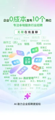 江苏直聘-江苏人的求职招聘APP,专注本地服务行业招聘!降低企业招工成本,企业0成本发布岗位,无限畅聊!平台利用人工智能、大数据算法先进技术,助您解决招人难的问题!领先的互联网招聘模式:①聊天找工作、挑老板②招聘/求职双向智能推荐③缔造高效,一小时到岗平台设有企业屏蔽功能,完全保障你的个人隐私! 严格的职位审核机制,对虚假信息零容忍!下载江苏直聘,多一个渠道,招工高效无忧,好工作随时随地找上你!