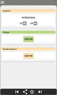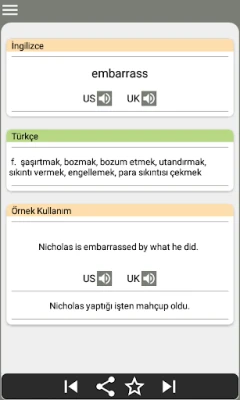 İngilizce öğrenmek istiyorsunuz. En çok kullanılan kelimeleri sizlere kolayca öğretecek bir uygulama arıyorsanız uygulamamız tam sizlere göre. İçerisinde bulunan en çok kullanılan 3000 kelime sayesinde günlük konuşmalarda kullanılan pek çok kelimeyi öğrenmiş olacaksınız. Ayrıca kelimelerin telaffuz şekillerini ve bu kelimelerin örnek olarak kullanıldığı cümleler sizleri bekliyor. Bu sayede hem kelimeleri hem de telaffuzlarını sesli olarak öğreneceksiniz. Ayrıca uygulamamızdaki bağlantılar sayesinde ingilizce sözlük, günlük diyaloglar, telaffuz dersleri, en çok kulllanılan fiiller nesneler gibi pek çok uygulamamıza da ulaşabilirsiniz.