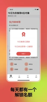 主要功能有:1.免费注册上传相亲资料;2.每日免费推荐6个相亲对象;3.免费浏览相亲对象资料;4.免费收藏相亲对象资料;5.每日一次免费解锁相亲对象联系方式的机会。6.免费隐私设置,经过审核通过后对方才能成功解锁联系方式,保护隐私安全。