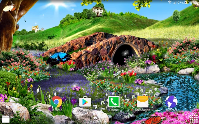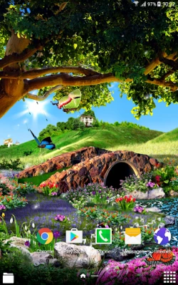 Animated 3D butterflies, amazing spring landscape with myriads of flowers, live stream that flows under a sprawling tree, animated clouds and dandelion seeds. All this and even more can be found in these amazing free 3D live wallpaper. Install it, and it will give you the feeling of a sunny summer day, the coolness and freshness in the shade near a rapid stream. Enjoy the beauty of the flower meadow. See how gracefully fly real 3D animated butterflies. This live wallpaper will be a perfect decoration for your phone or tablet and will please you for a long time.