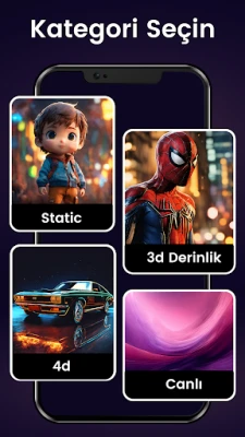 Ücretsiz duvar kağıdı temaları uygulamasında birden fazla kategoriden canlı duvar kağıdınızı seçin. Örümcek adam duvar kağıtlarından canlı fotoğraf duvar kağıtlarına kadar, herkes için bir şeyimiz var. 4D duvar kağıdı paralaks efekti, 3k'dan fazla duvar kağıdı temasıyla telefonunuzu daha çekici hale getirir.