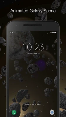 Animated backgrounds with 3d meteors rain effect , galaxy and asteroids. 3d space theme on your home screen or lock screen.