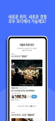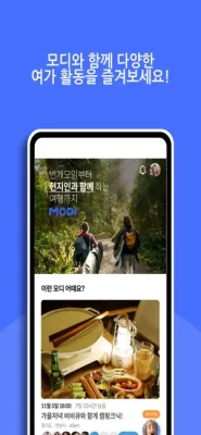 모디는, 서로 몰랐던 사람들이 함께 모여 즐길 수 있는 여가 플랫폼을 꿈꿉니다.