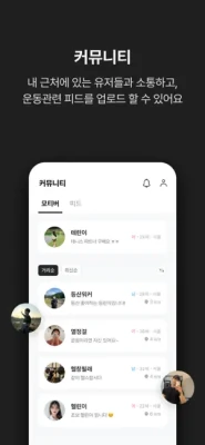 지금 모티브에서 나와 가까이에 있는 운동파트너를 찾아, 운동력을 높혀보세요! - 간단한 가입과정을 거쳐 프로필을 완성하면 내 주변의 운동파트너를 찾을 수 있어요. - 함께 운동하고 싶은 파트너를 찾았다면 대화를 걸어보세요!