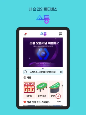 관심사가 비슷한 사람들과 메타버스에서 얼굴을 보며 대화하세요!이제 단순한 채팅이 아닌, 영상으로 소통하는 진짜 커뮤니티를 경험해 보세요.소통에서는 자유롭게 스페이스를 생성하고, 원하는 주제의 사람들과 대화할 수 있습니다.혼자 있고 싶을 때, 새로운 사람들과 이야기하고 싶을 때, 가볍게 게임을 즐기고 싶을 때소통에서 모든 것이 가능합니다!소통과 함께라면, 새로운 사람들과 진짜 소통이 시작됩니다!지금 바로 다운로드하고, 메타버스 속 나만의 공간을 만들어 보세요.