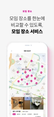 · 모임하기 좋은 장소를 리스트와 지도로 한 눈에 비교해볼 수 있어요.