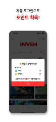 3. 자동 로그인은 기본, 불로소득도 인벤 앱을 실행할 때 체크해서 자동으로 받습니다.