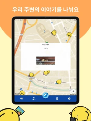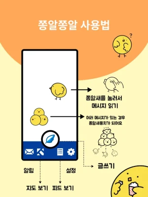 쫑알쫑알은 지도에 쫑알새를 띄워서 이야기를 주고받는 SNS 서비스입니다.가벼운 마음으로 이웃 사람들과 일상을 나눠보세요.