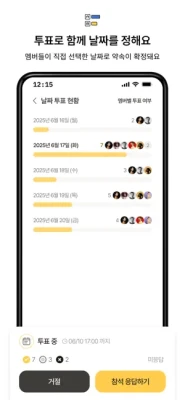 - 상황에 맞게 날짜 투표 또는 자유 모집 방식으로 약속을 만들 수 있어요.