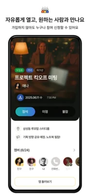 - 앱에 가입하지 않아도 링크만 있으면 누구나 참여할 수 있어요. 가입하면 내 약속도 자동으로 연동돼요.