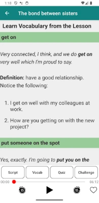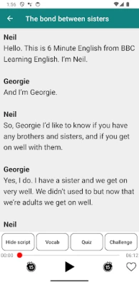 Listening and speaking are the most important skills in English. This 6 Minute English app will help you to improve these skills on daily basic. You can learn English conveniently everyday, everywhere.
