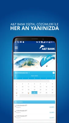 A&T Bank Mobil ile Bankacılık işlemleriniz için cep telefonunuz size yeter.. Dilediğiniz her yerden para transferi, döviz alış-satış, vadeli-vadesiz hesap açma gibi finansal işlemlerinizi gerçekleştirebilir, varlıklarınızı gözlemleyebilirsiniz. İnternet Bankacılığı ekranından gerçekleştirdiğiniz işlemlerinizde güvenlik çözümü olarak A&T Bank Mobil uygulamasını kullanmaya devam edebilirsiniz.