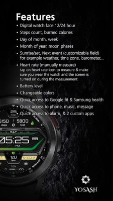- Digital watch face switchable to 12/24 hour via Phone Settings