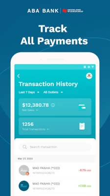 With ABA Merchant, you can monitor all your transactions in real time and see the summary of your daily sales volume in a glance. Moreover, you can track sales from multiple sales-points and cashiers. All transaction statistics can also be downloaded in the form of reports for accounting needs and analysis.
