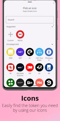Over time, you'll likely accumulate tens of entries in your vault. Aegis Authenticator has lots of organization options to make finding the one you need at a particular moment easier. Set a custom icon for an entry to make it easier to find. Search by account name or service name. Have a lot of one-time passwords? Add them to custom groups for easier access. Personal, Work and Social can each get their own group.
