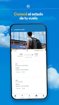 * Conocé el estado de tu vuelo: Dentro de las 24 horas previas a tu viaje, podés consultar el estado.