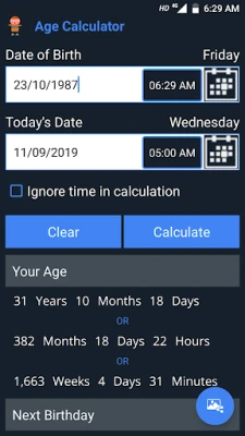 Amazing age calculator app to calculate your Age and find total years, months, days, weeks, hours, minutes and seconds between two dates and also it is a useful app to find date difference between important events like marriage anniversaries, work anniversaries, birthday, festivals, holidays, etc…