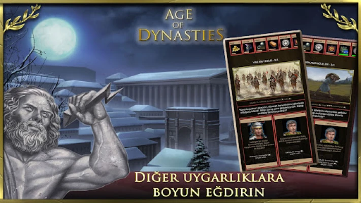 - antik Roma'da geçen inovatif bir strateji ve taktik oyunu. Age of Dynasties dört farklı oyun türünü mükemmel bir şekilde harmanlıyor: medeniyet savaşları ve fetih oyunları, sıra tabanlı strateji, yönetim oyunları ve RPG'ler (Rol yapma oyunları).