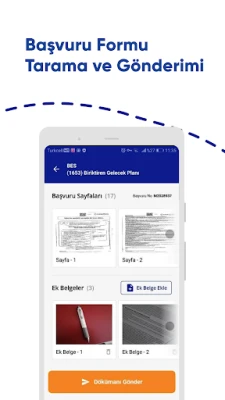 AgeSA ÇekGönder Mobil üzerinden BES ve HAYAT başvurularına ait taranmış formların operasyonel süreç takip detaylarını görüntüleyebilir. Düzeltmeye düşen eksik evrakları tarayıp gönderebilir, Operasyonel ve Teknik değerlendirme süreçlerini yürütebilirsiniz.