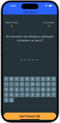 Cevap bulmakta zorlandığınızda ipucu olarak harf alabilirsiniz. Ancak harf aldıkça puanınız düşer. Doğru tahmin için dikkatli olun!