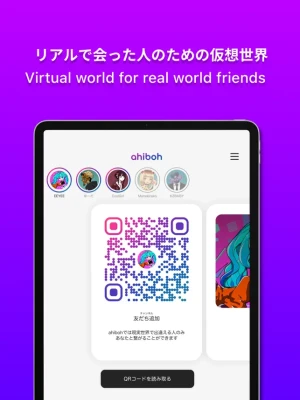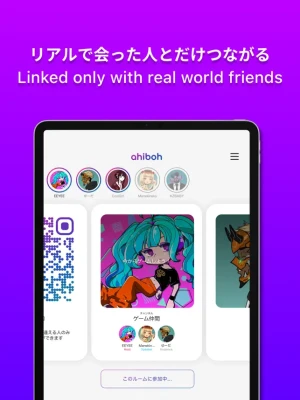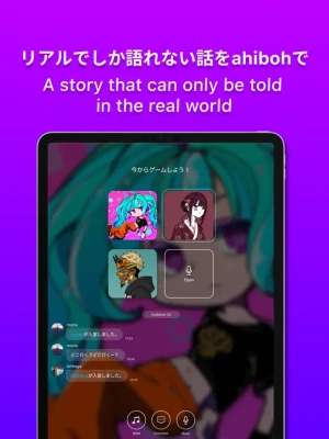 ahiboh is a virtual world (Voice SNS) for people who have met in real world and want to talk about their true feelings that can only be discussed in real world. It is a new virtual world where you can talk with people you have met in real life without any reason or purpose. ahiboh is a new virtual world where you can talk about your true feelings that you cannot talk about in other SNS or metaverse. You can meet new people only through your friends on ahiboh. You can also meet people through ahiboh who you have met on the internet or other social networking services, and then meet in real life at offline meetings or events. You can have a personal space with psychological safety in the virtual world (SNS) because it is only real world friends. ahiboh will make you a happy partner through conversations and encounters that can only be created through ahiboh. And let's be grateful for the opportunity to meet each other on this earth in this time with a probability of 1 in 7 billion, and let's give to each other and realize a big circle of world peace from a small world peace.