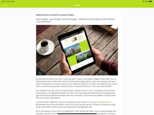 ADLERSHORST to go - mit AHOI haben Sie zukünftig alle wichtigen Informationen rund um ADLERSHORST immer bei sich: Hier wird regelmäßig über aktuelle Projekte berichtet, egal ob Neubau- oder Modernisierungsprojekte, vakante Stellen oder Pressemitteilungen. Am besten gleich runterladen und digital durchstarten!