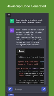 AI Javascript Code Generator is an advanced AI-powered tool designed to help developers, students, and programmers generate Javascript code instantly. Whether you need functions, event handlers, API calls, form validations, or complex algorithms, this app provides quick and accurate Javascript solutions.