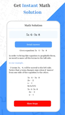 Instant Solutions: Simply snap a picture of your math problem, and our advanced AI algorithm will provide you with step-by-step solutions in seconds.