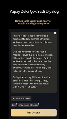 🔹 Çok Sesli Diyalog: AI sesleriyle diyaloglar oluşturun.