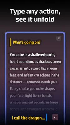 - Total Creative Control. Input any action, dialogue or idea, and the AI story generator crafts a dynamic text RPG that evolves with your choices in real-time offering limitless AI fantasy adventures.