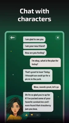 - Chat with Characters. Engage in dynamic conversations with unique, AI-driven characters that respond intelligently to your dialogue, deepening your immersive roleplay experience.